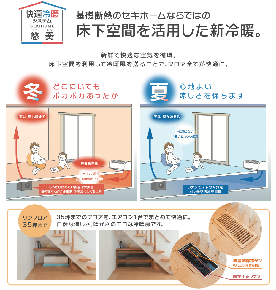 これはセキホームでは「悠奏(ゆうそう)システム」という呼び名で自信を持ってオススメしている冷暖房システムです。