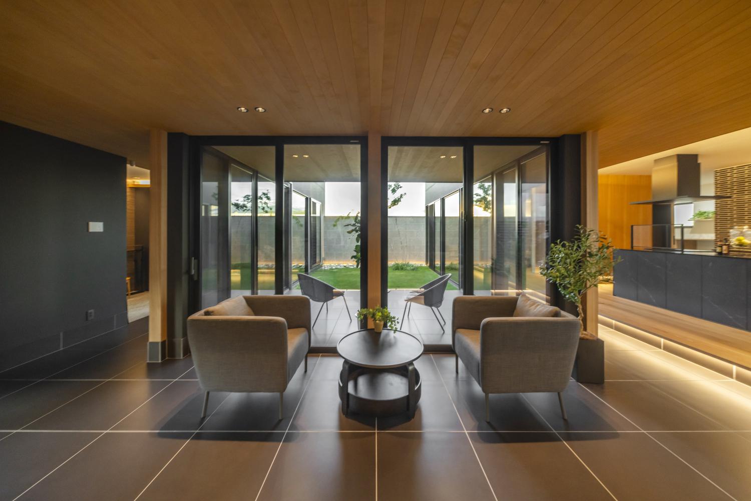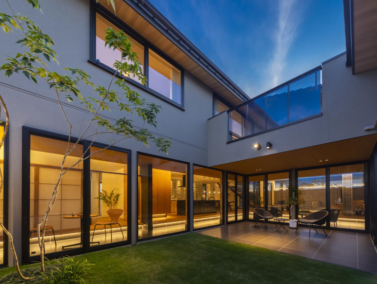 一日中カーテンを開けっ放しにしても誰の目も気にならず、家族だけの安心感と開放感を両立させた、究極の「囲い庭」の形をご覧いただけます。