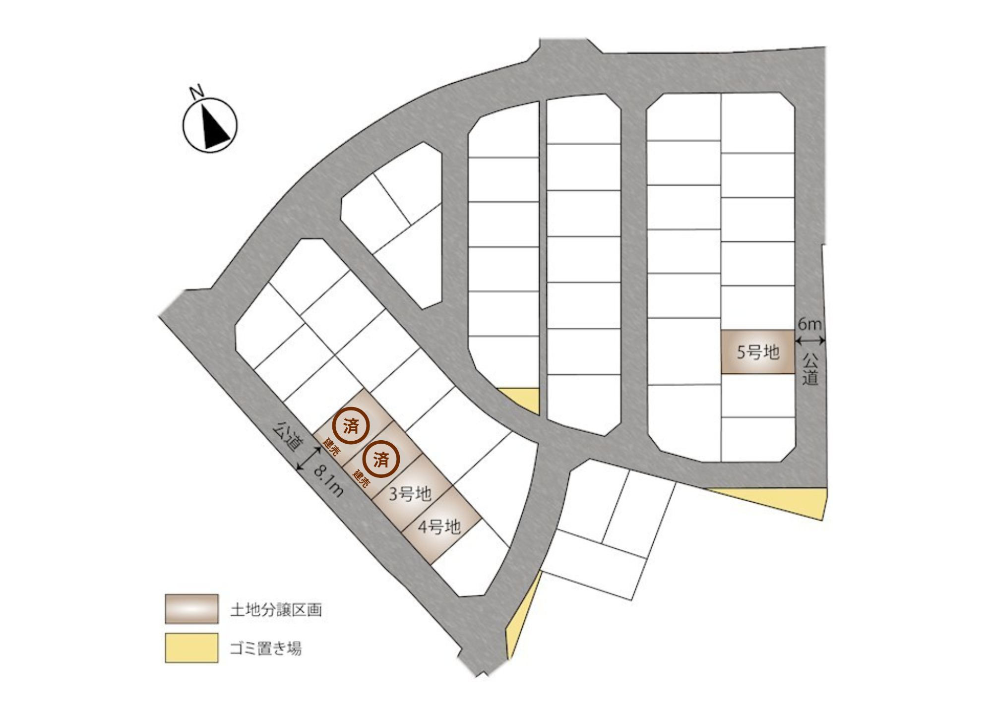 | 4号地 | 165.4㎡ | 50.3坪 | 102,000円 | 5,100,000円 |