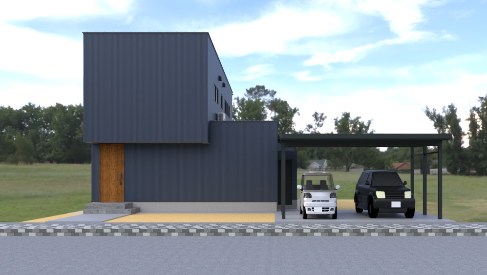 外壁には、耐久性と美しさを兼ね備えたダークブルーのガルバリウム鋼板を採用。