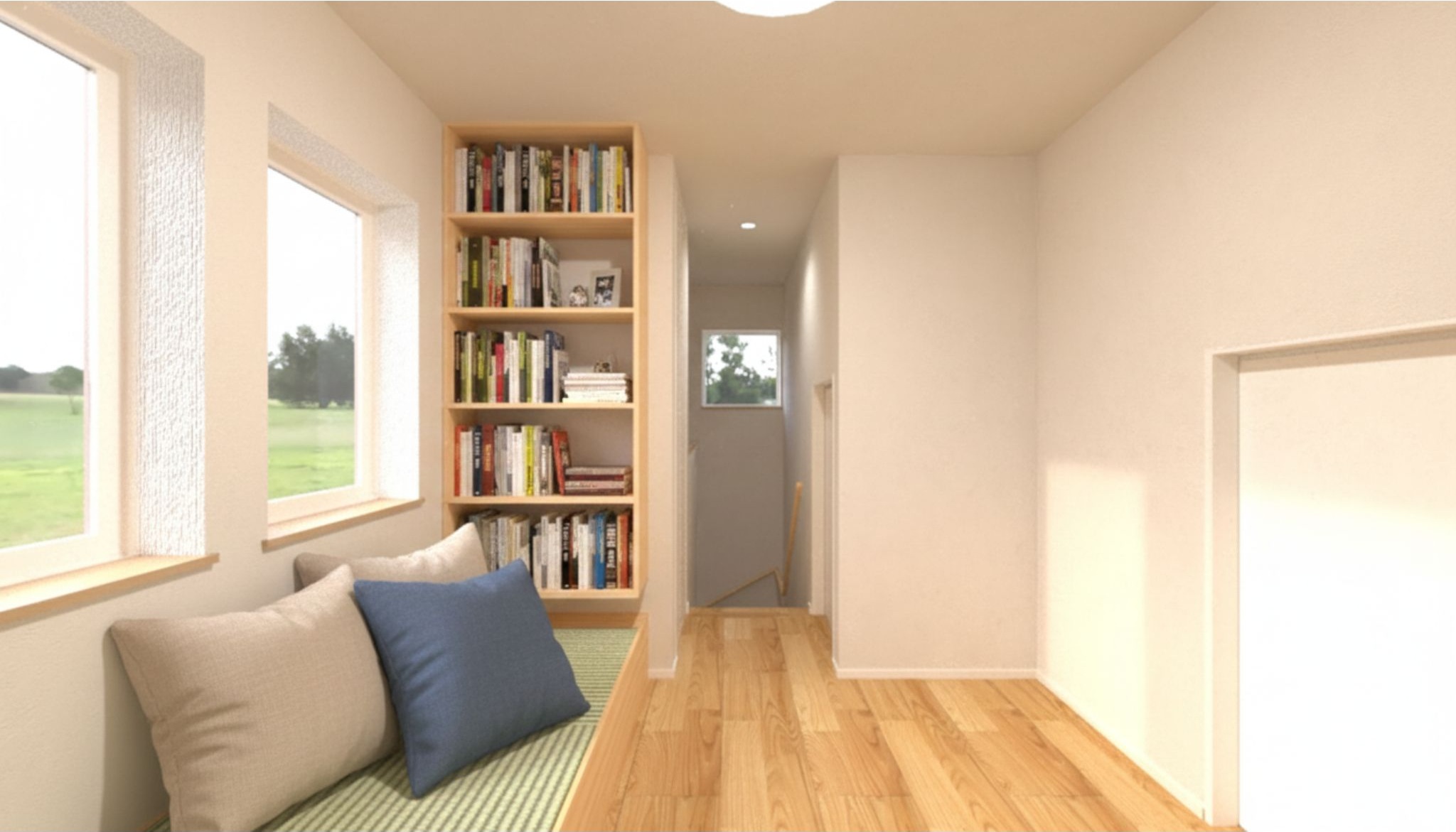 2階には、畳ヌックや書斎を設け、家族が思い思いの時間を過ごせる空間を用意。