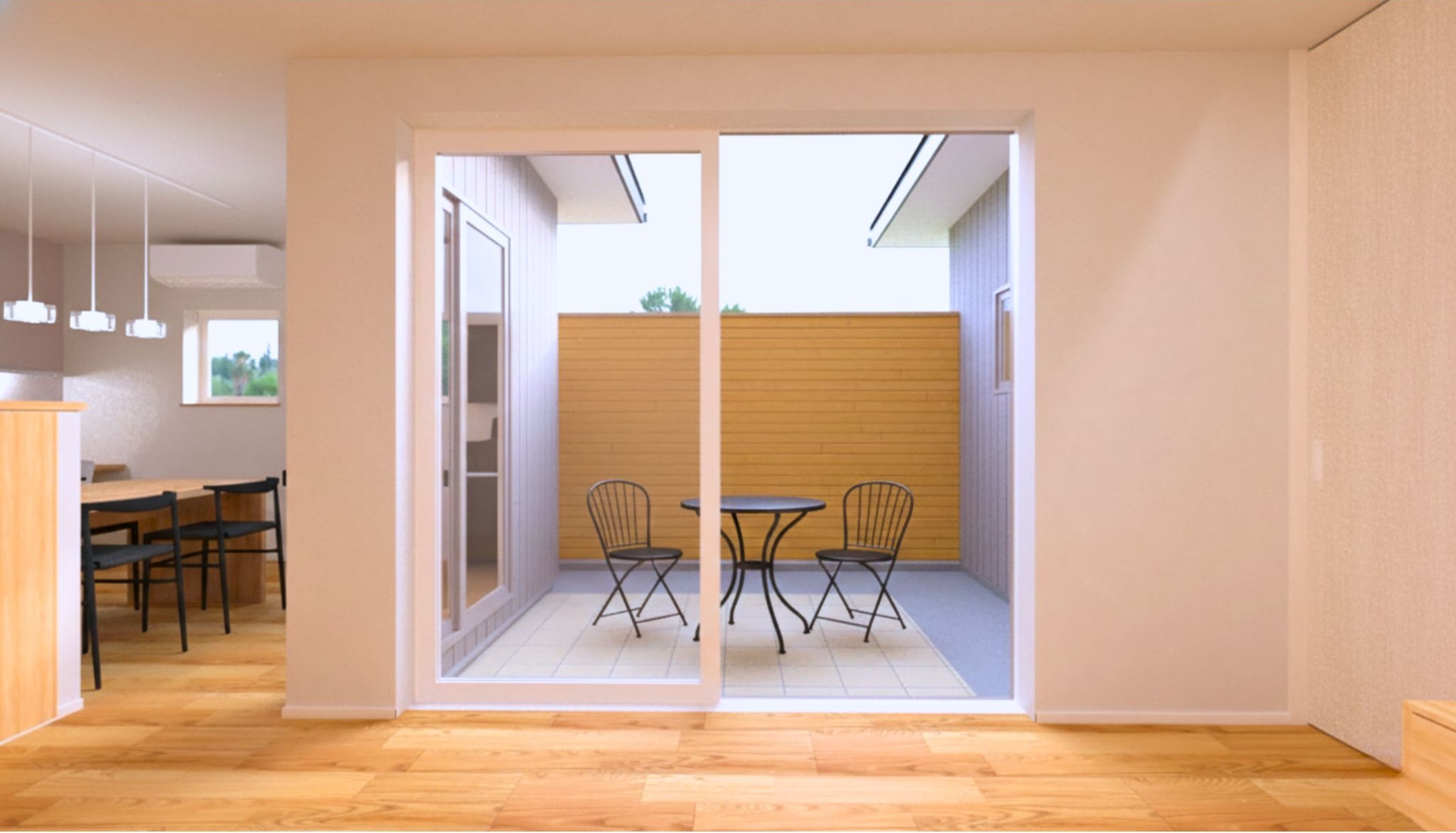 外からの視線を気にせず、光と風を取り込める中庭は、家族だけの心地よい居場所に。