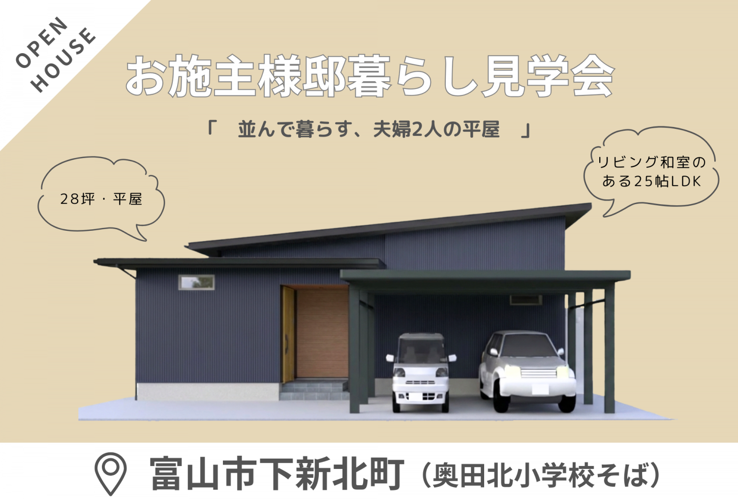 【2/14(土)・15(日)】富山市下新北町 「並んで暮らす、夫婦2人の平屋」完成見学会