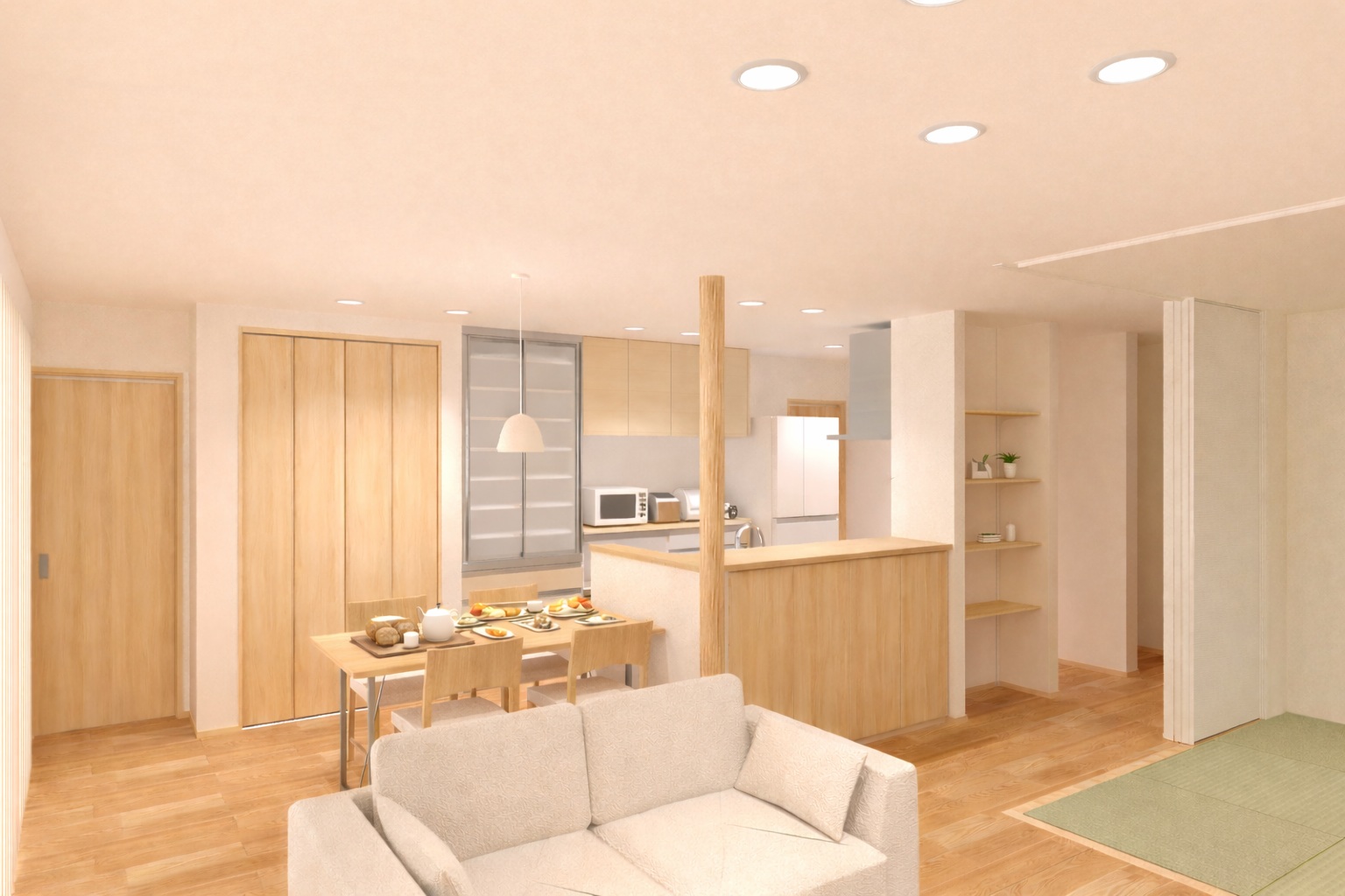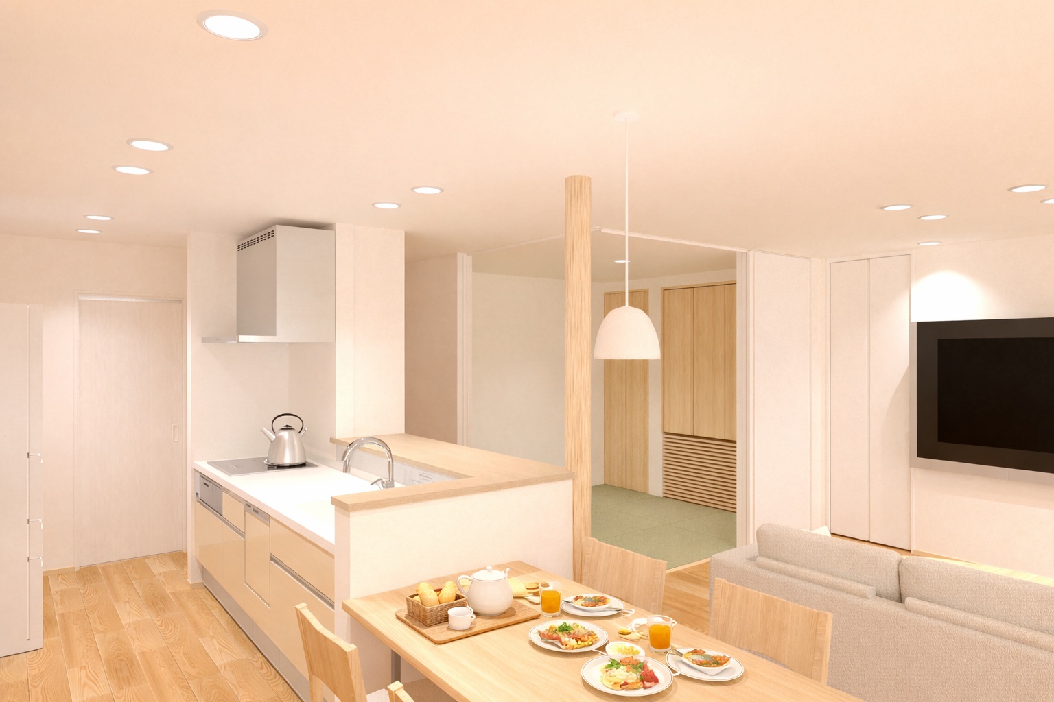 LDKと和室が、ゆるやかにつながる間取りです。