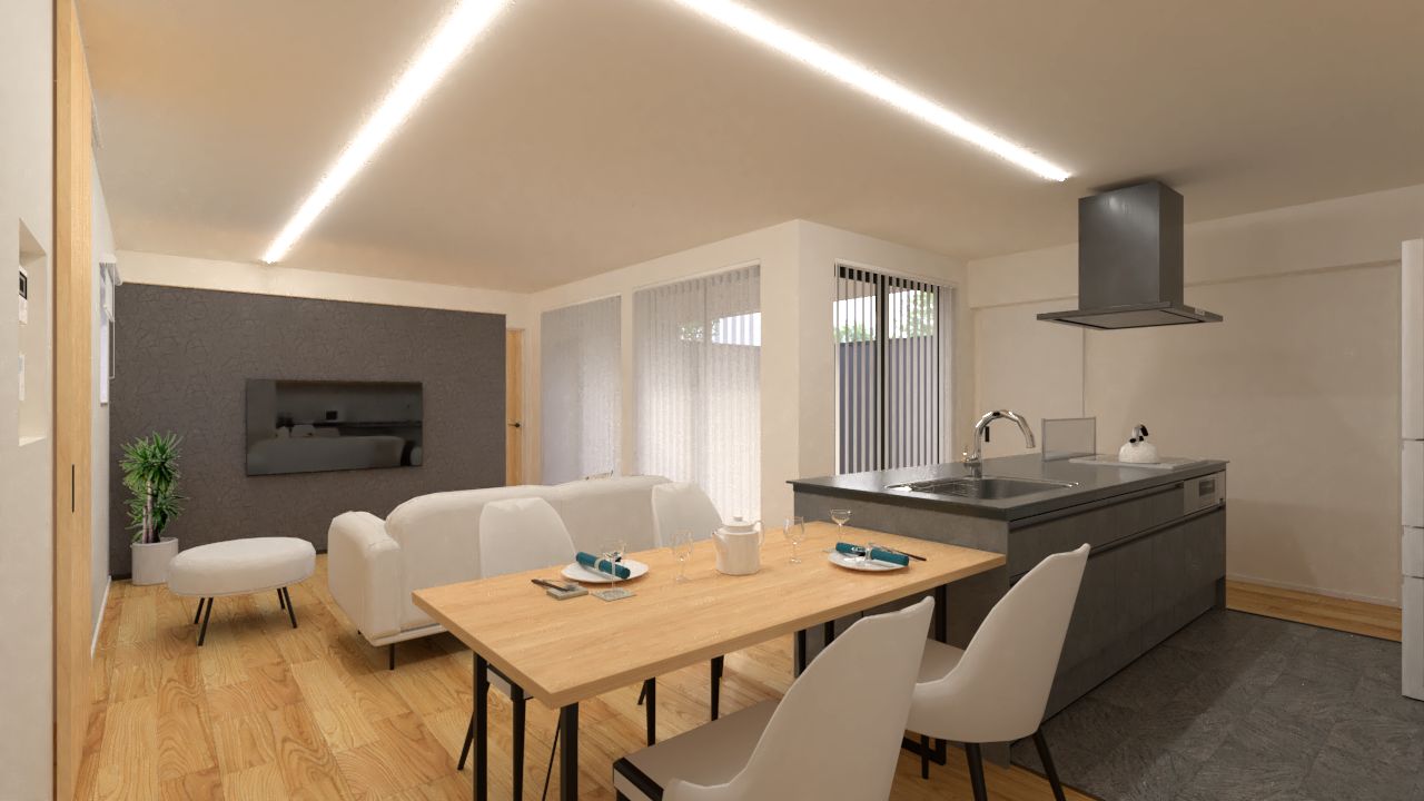 【平屋|魚津市本新モデル】南向きLDKと囲い庭。穏やかに暮らす、3LDK平屋の住まい