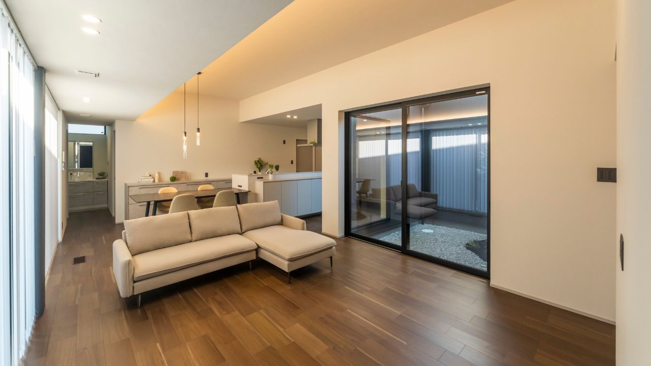 天井高3mのLDKと、囲い庭による”視線の抜け”の工夫で、