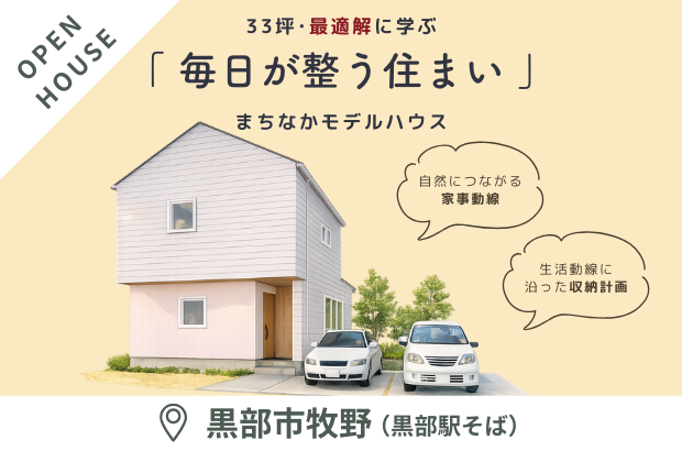 【3/14(土)~限定公開】黒部市牧野「33坪・最適解に学ぶ、毎日が整う住まい」完成見学会