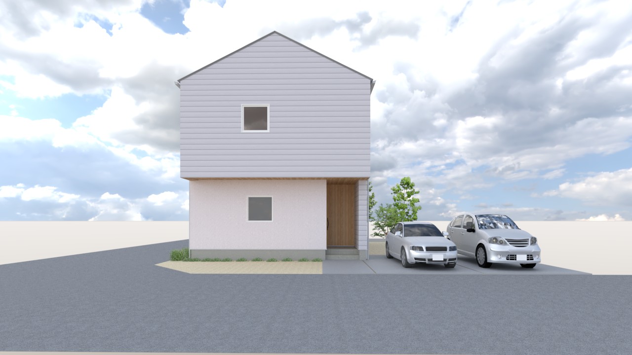 やさしい色合いと素材感でまとめた、北欧ナチュラルな外観。