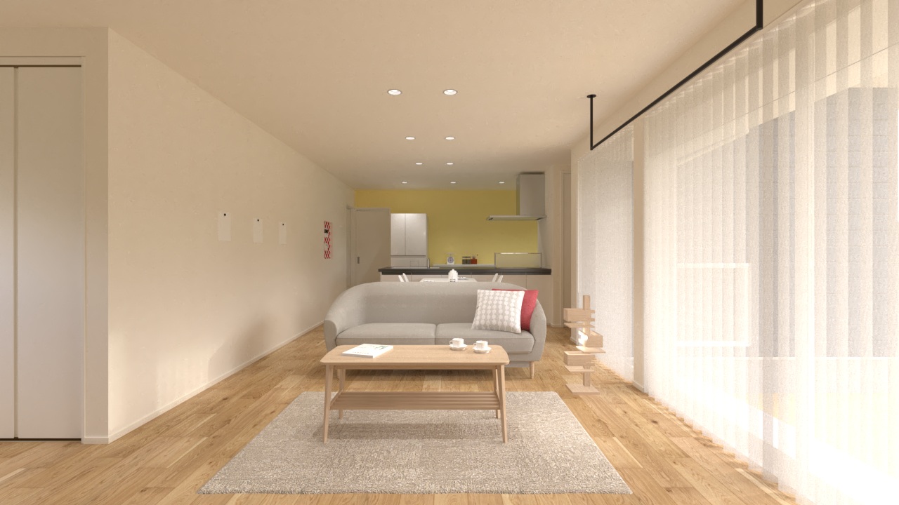 日中は南面からやわらかな光がたっぷりと差し込み、LDK全体を明るく包み込みます。
