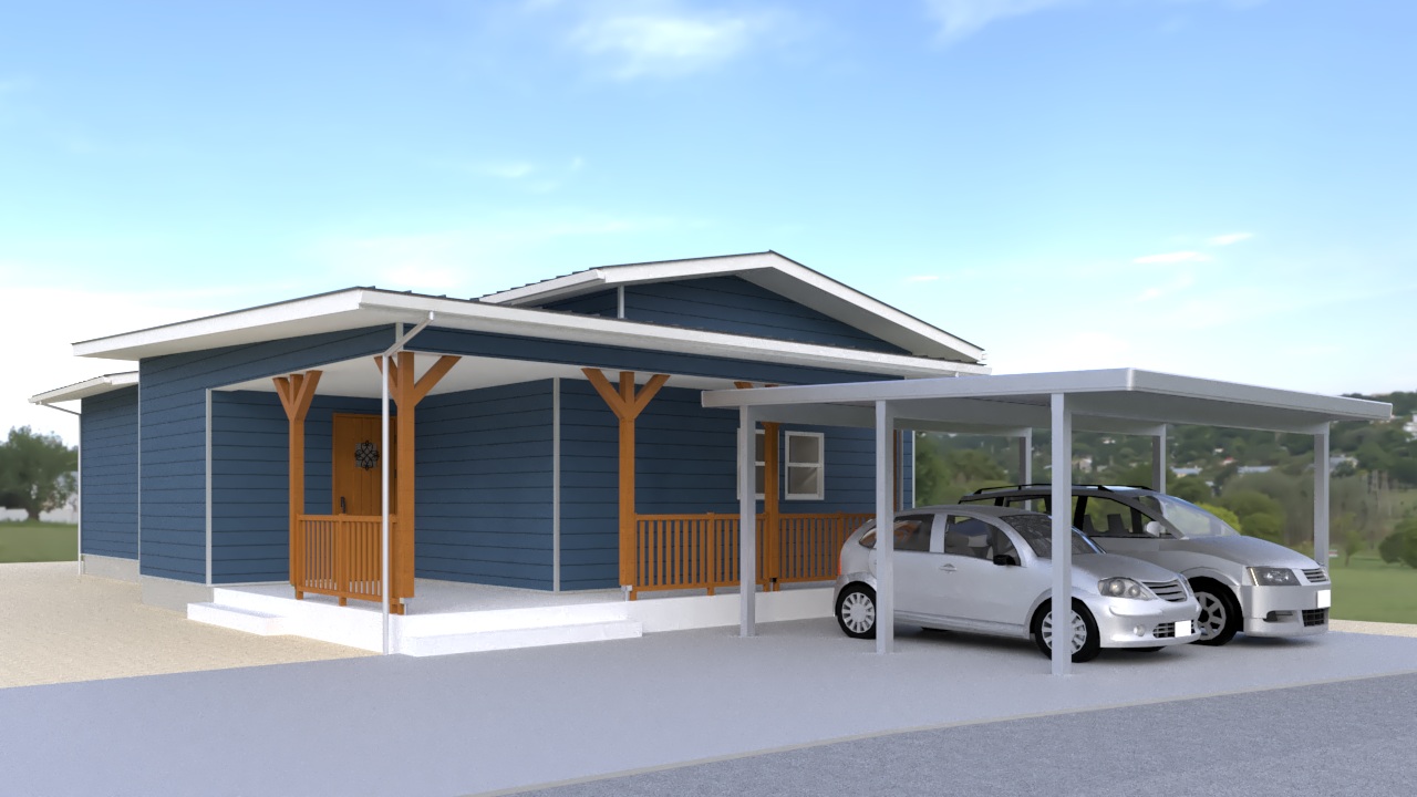 ディープブルーの外壁が印象的な、カリフォルニアスタイルの平屋。