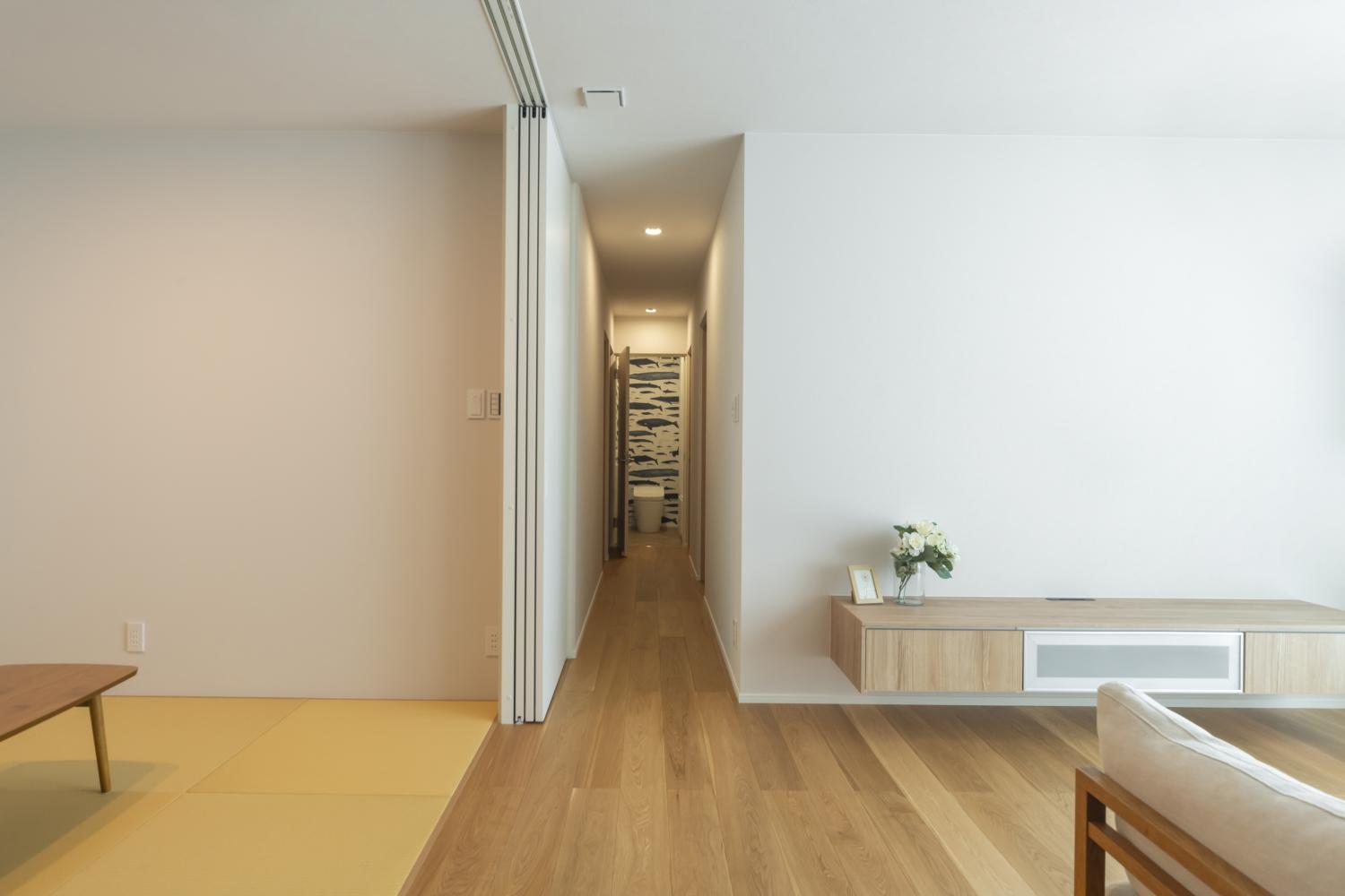 脱衣所とランドリールームは分けることで、家族間のプライバシーに配慮しています。